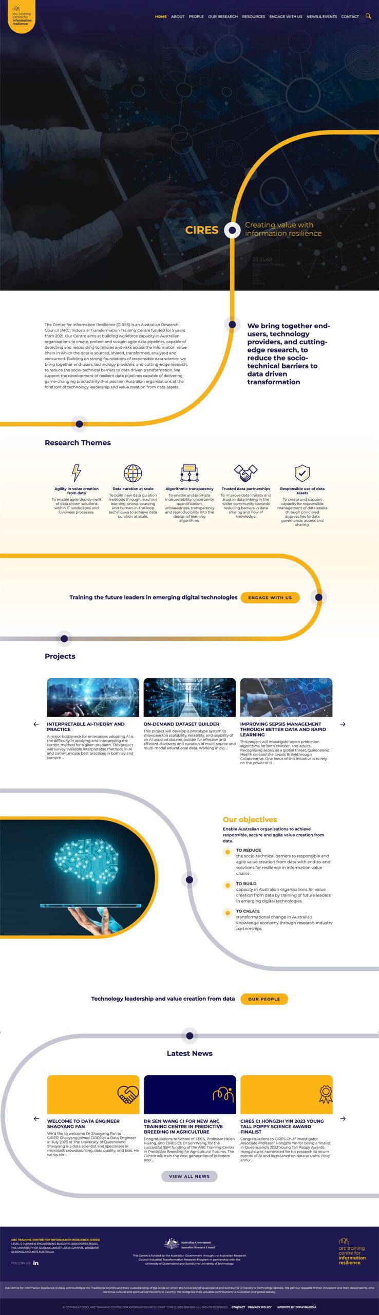 This website was designed to highlight the CIRES research through a modern and engaging interface. The interface design used brand logos and colour scheme in a cohesive and consistent way throughout the website. We custom coded the WordPress theme to suite the design interface using custom post types to make editing by the administrators straight forward and intuitive.