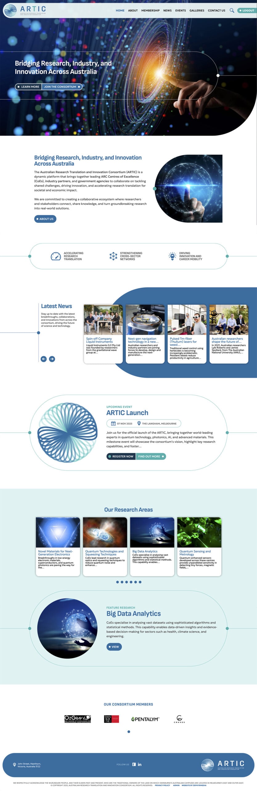 Design a new brand and a visually engaging website that highlights the collaboration of The Australian Research Translation and Innovation Consortium (ARTIC). Easy backend maintenance for site administrators also a prerequisite.