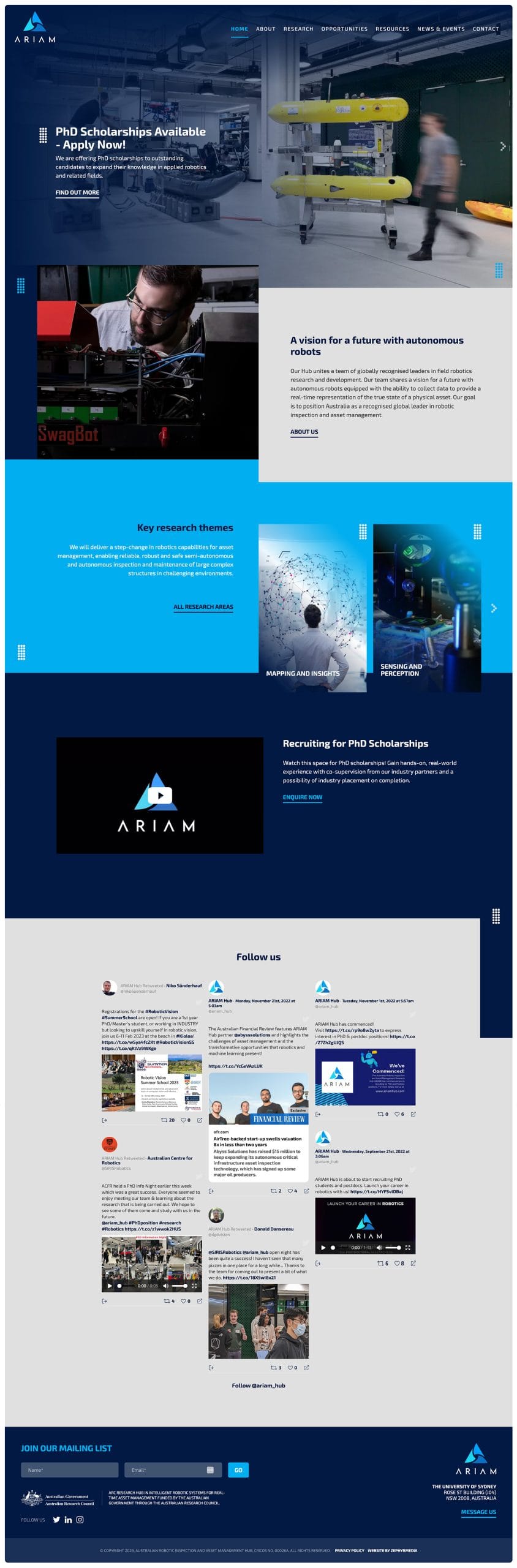 This website was designed to highlight the robotic research through a modern and engaging interface. The interface design used brand logos and colour scheme in a cohesive and consistent way throughout the website. We custom coded the WordPress theme to suite the design interface using custom post types to make editing by the administrators straight forward and intuitive.