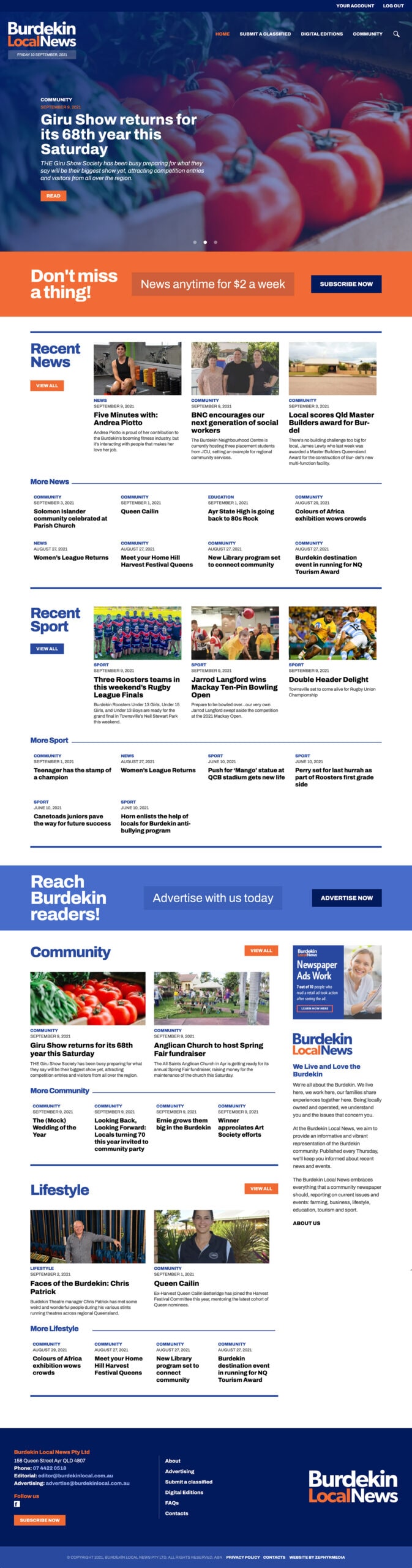 This website was designed to highlight the extent of news, community information and photo galleries available on the site through a modern and engaging interface. The design used existing brand logos and colour scheme and incorporated them in a cohesive and consistent way that follows the design of the publication. This design aesthetic was carried through the entire site while custom post types were employed in the backend to make editing by the administrators straight forward and intuitive.