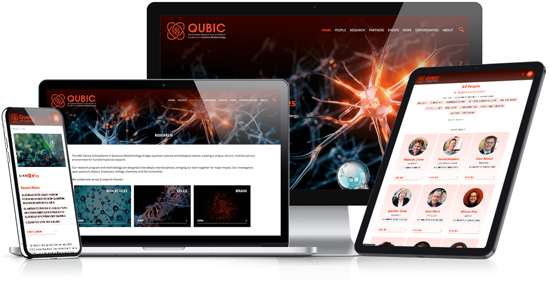 This website was designed to highlight the Quantum Biotechnology centre through a modern and engaging interface. The interface design used brand logos and colour scheme in a cohesive and consistent way throughout the website. We custom coded the WordPress theme to suite the design interface using custom post types to make editing by the administrators straight forward and intuitive.